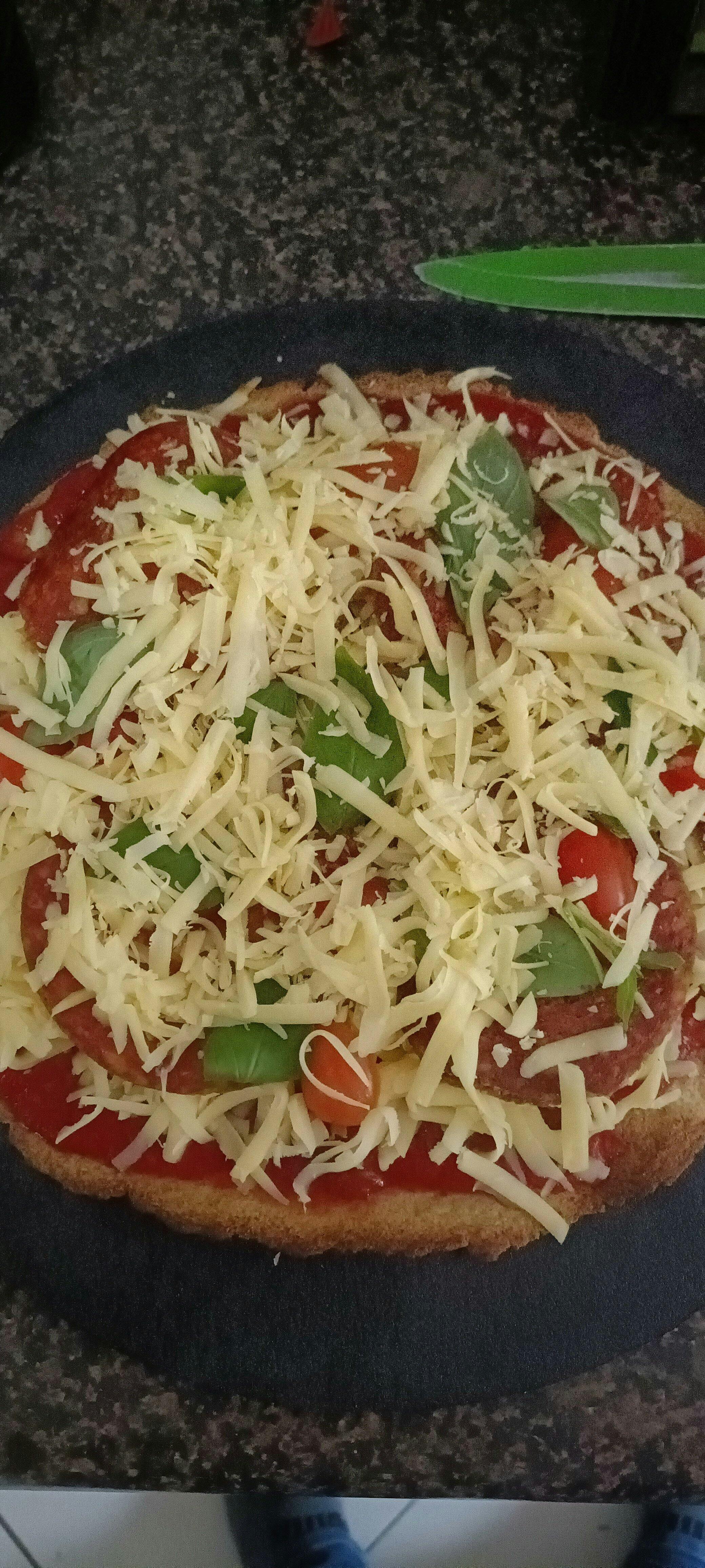 - Remove from the oven and prep as you would any other pizza – spread tomato paste onto the base, add cheese and additional toppings